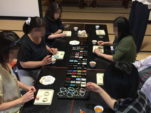 今日は8名ほどの女性の方々がお数珠づくりに体験にお越し頂きました。