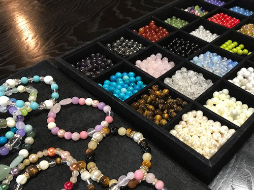 たくさんの天然石から自分のインスピレーションを感じた珠を選んでデザインし、自分だけのオリジナル数珠を作成。