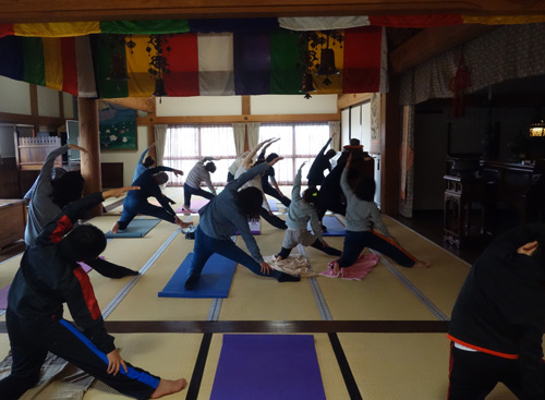 今日は寺ヨガでした。春休みということで、お子さんの参加もありました。