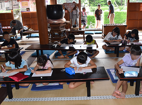 本日夏休み寺子屋。小学生・中学生合わせて35名が集まって寺子屋でプチ修行をしました!