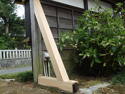 山門の柱が浸水による老朽化のため補修工事を行いました。