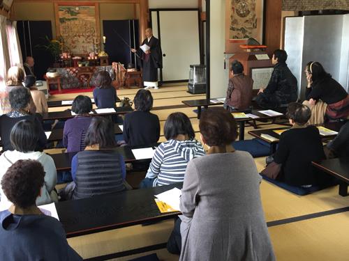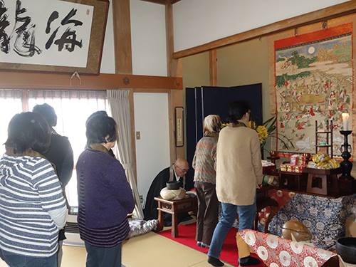 海龍寺では、女性部の方々と共に、お釈迦さまがお亡くなりになった時のご様子、涅槃図をかけて、お参りいたしました。
