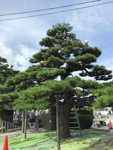 秋彼岸を迎えるにあたり、庭師さんに剪定をしていただいております。