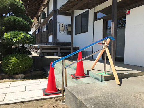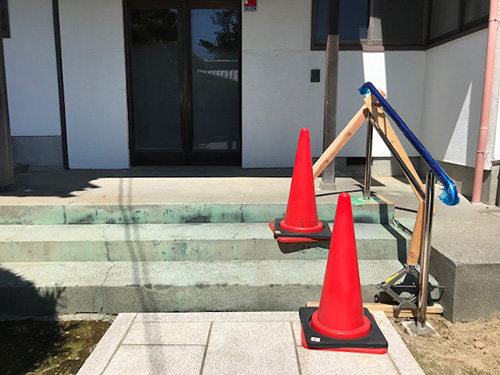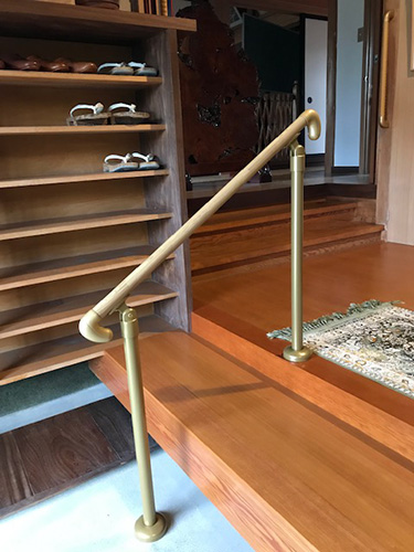 ご高齢の方、足腰が不自由な方のために、玄関口に手すりを取り付けました。