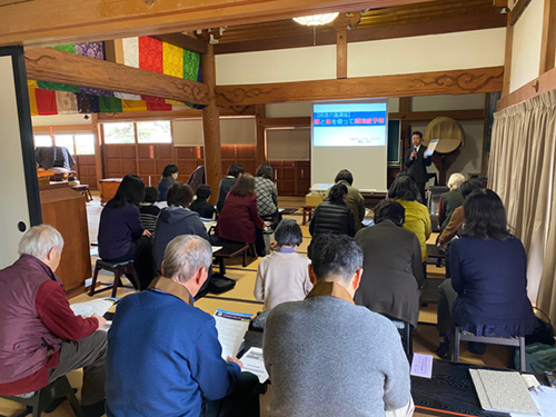 本日は、涅槃会法要をお勤めしたのち、出雲殿まごころサポートセンターの藤田師をお迎えして、認知症予防のためのセミナーを開きました。