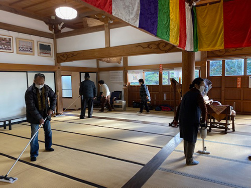 女性部地区役員の方々もお手伝いいただいて、境内大掃除を行いました。