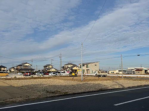 先ずは、田んぼを埋め立てて臨時駐車場を造成します。
